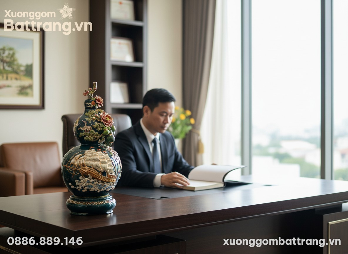 Với vẻ đẹp sang trọng và kích thước uy nghi, Bình Hồ Lô Thuận Buồm Xuôi Gió Đắp Nổi Vẽ Vàng XG-BG01 là lựa chọn hoàn hảo để trang trí các không gian nội thất cao cấp. Đặt bình tại phòng khách, sảnh lớn, hoặc phòng làm việc sẽ tạo điểm nhấn ấn tượng, thể hiện gu thẩm mỹ tinh tế và vị thế của gia chủ. Sản phẩm cũng là món quà tặng khai trương, tân gia hoặc thăng chức vô cùng ý nghĩa, thể hiện sự trân trọng và lời chúc tốt đẹp nhất.