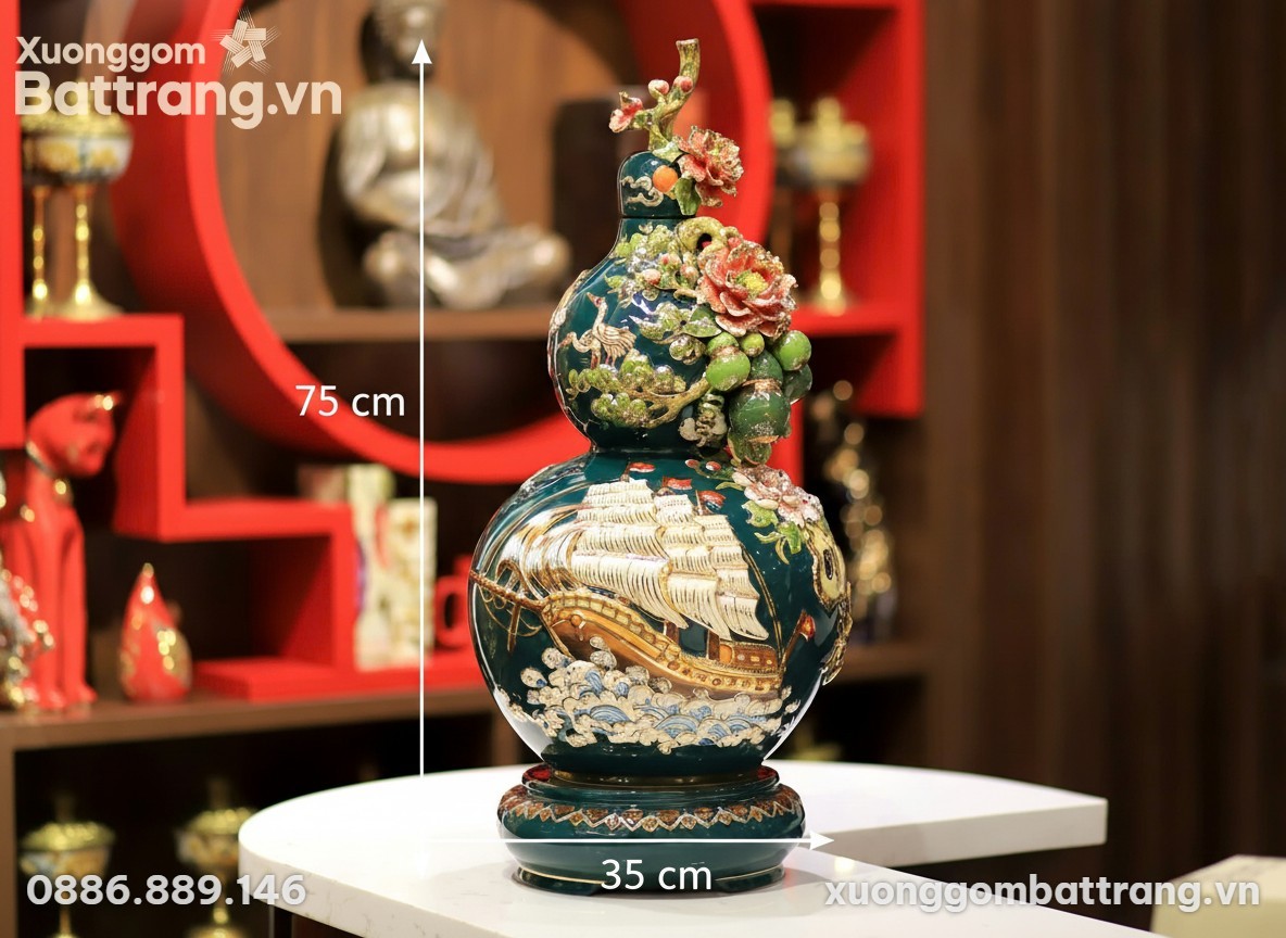 Bình hồ lô gốm sứ Thuận Buồm Xuôi Gió cao 75cm,...