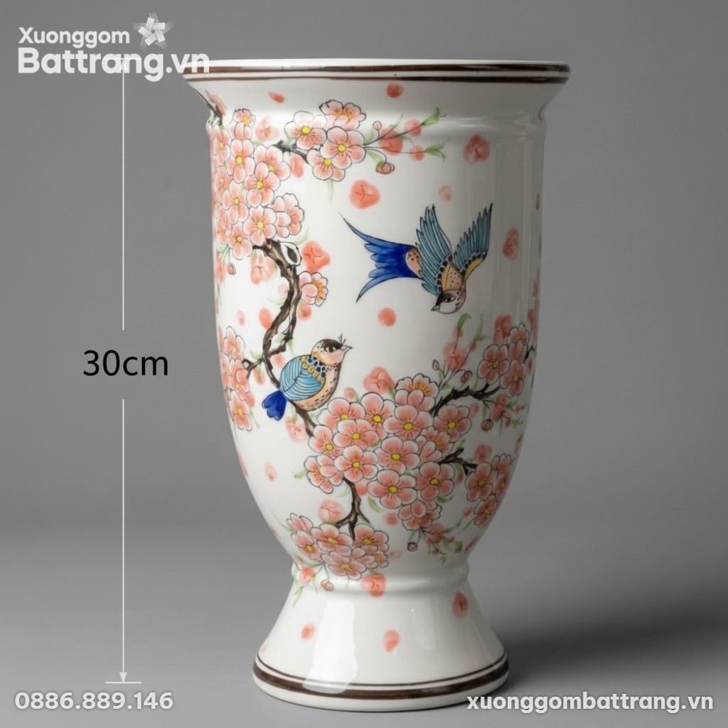Bình Hoa Sứ Bát Tràng Vẽ Tay Chim Én Hoa Đào XG-LH31