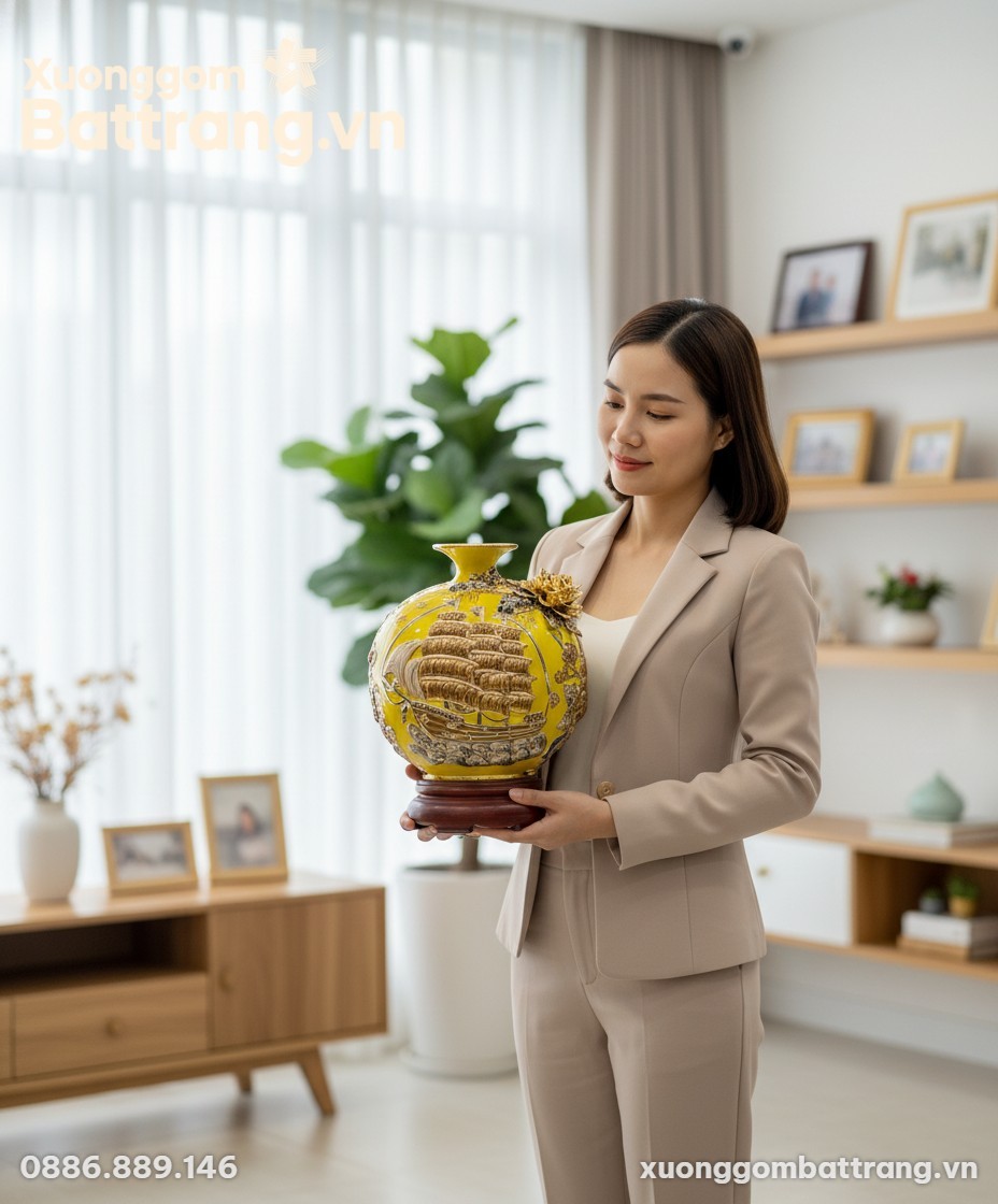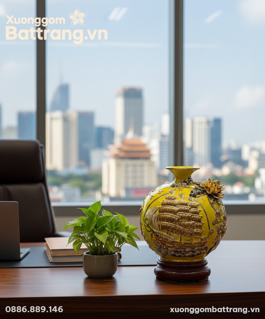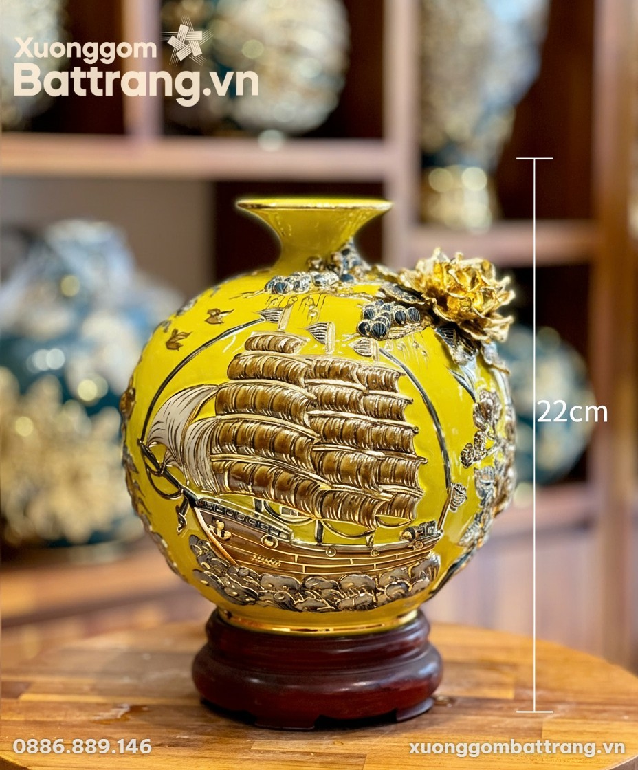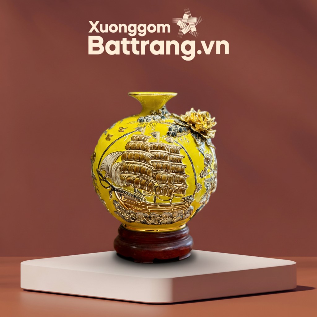 Đầu tư vào Bình hút lộc Thuận Buồm Xuôi Gió men vàng đắp nổi vẽ vàng XG-BHL03 là đầu tư vào giá trị phong thủy bền vững và vẻ đẹp nghệ thuật trường tồn. Hãy sở hữu ngay hôm nay để mang về may mắn và thịnh vượng cho không gian của bạn!
