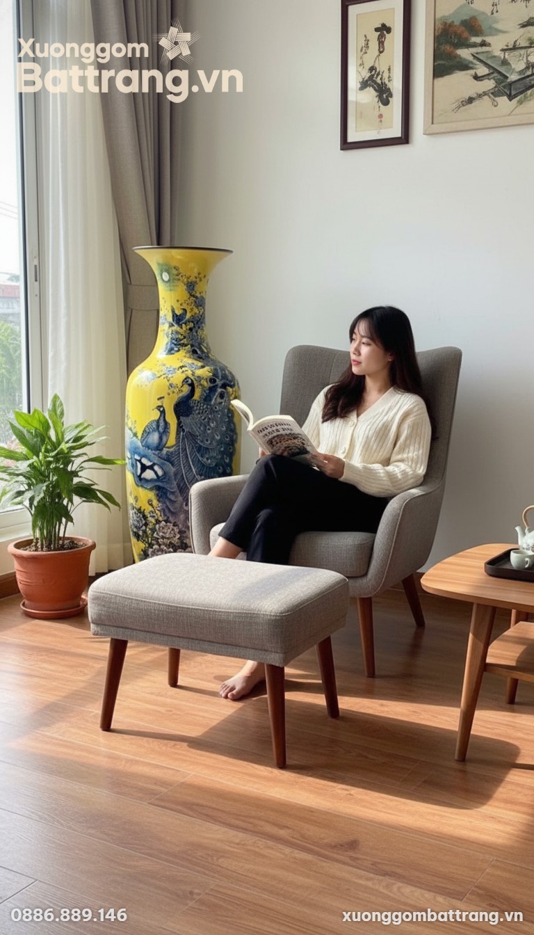 - Màu sắc phong thủy: Men vàng hoàng kim kết hợp họa tiết men lam, mang ý nghĩa tài lộc dồi dào, phú quý và may mắn, tối ưu cho việc thu hút vượng khí.