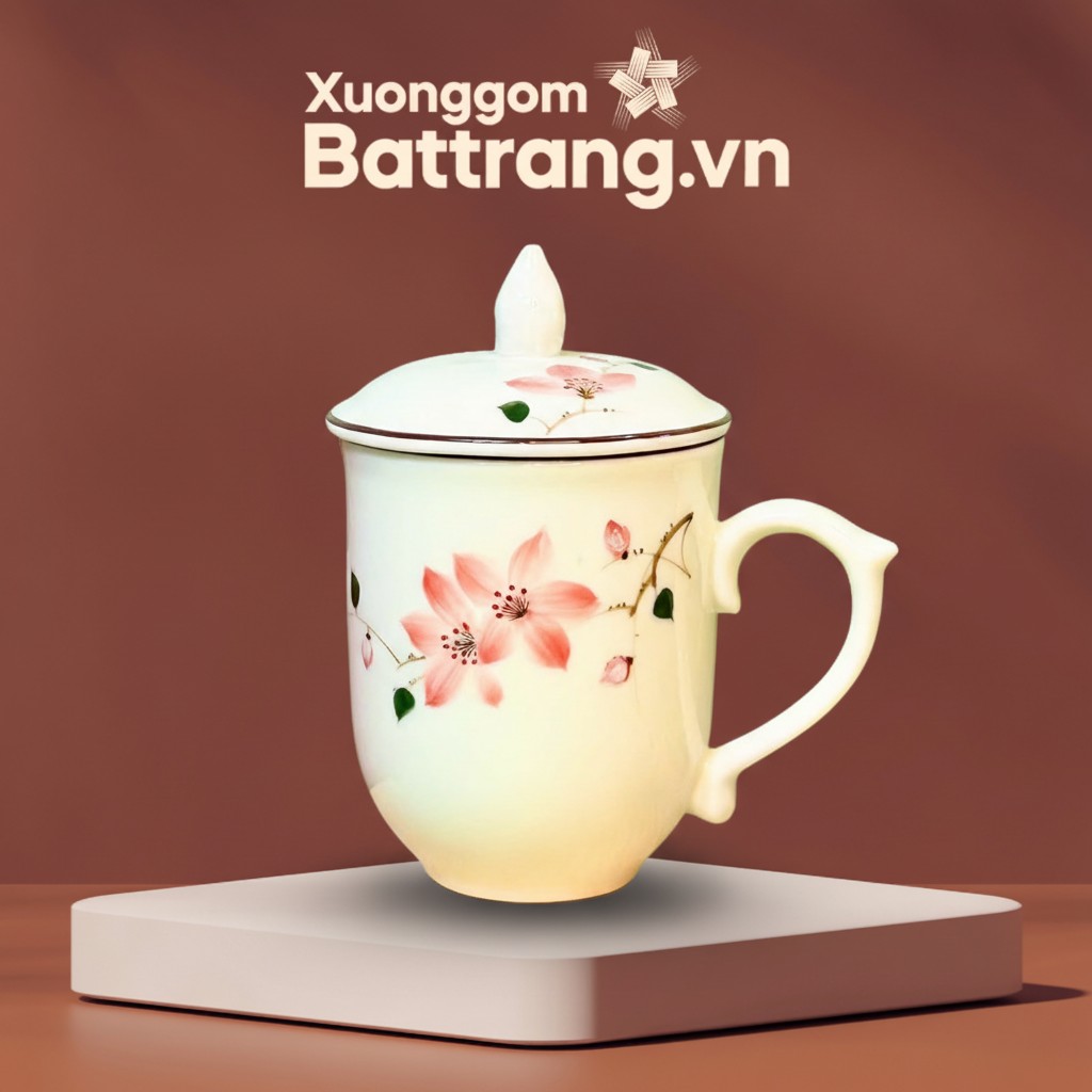 Cốc Sứ Trắng Có Nắp Họa Tiết Hoa Đào Hồng XG-LS06 là một lựa chọn tinh tế, mang đến vẻ đẹp thanh tao và sự tiện dụng vượt trội cho không gian sống của bạn.
