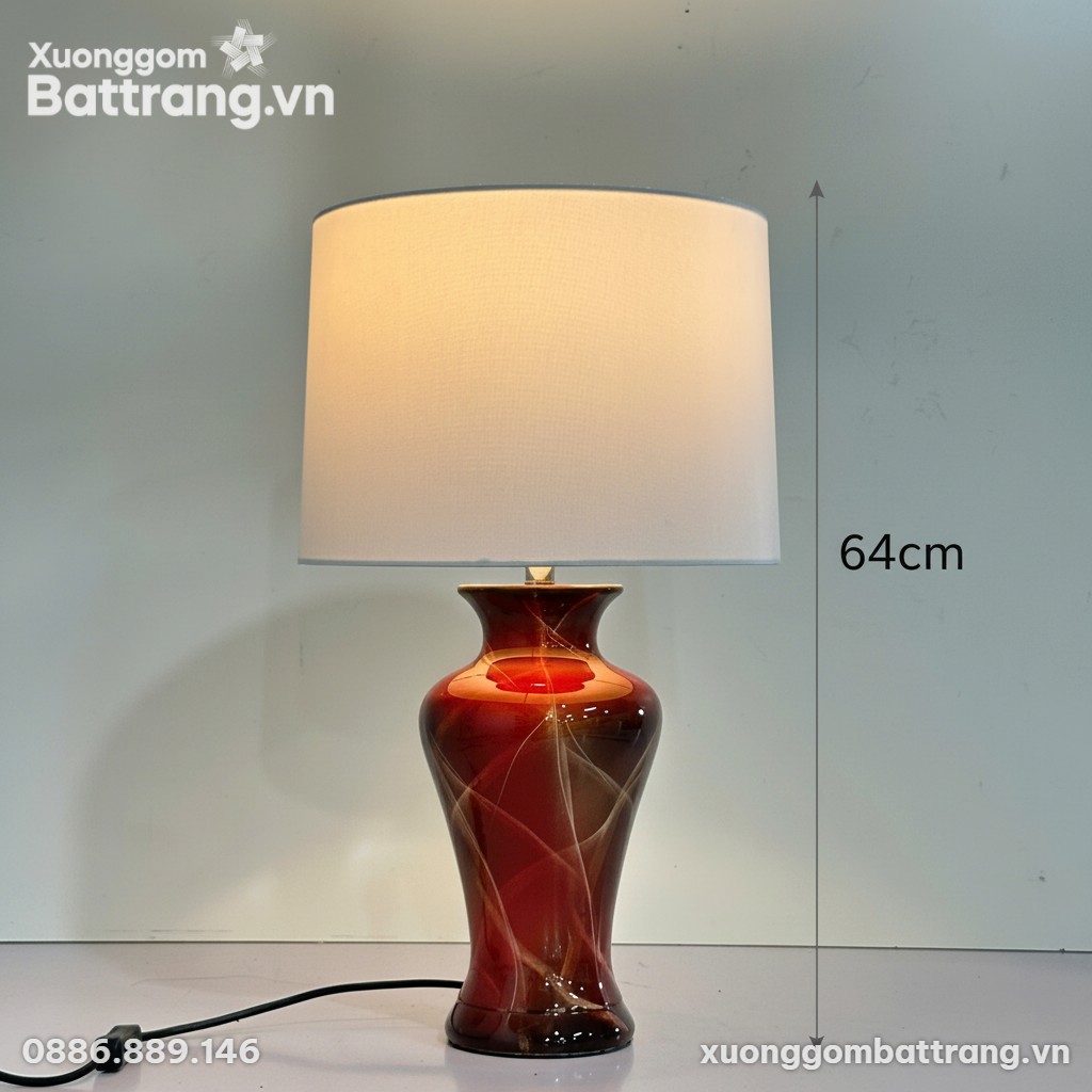 Đèn Ngủ Gốm Sứ Men Cẩm Thạch Ánh Đỏ XG-DN02 là một tuyệt tác nghệ thuật thắp sáng, nơi vẻ đẹp thủ công tinh xảo hòa quyện cùng công năng hiện đại để kiến tạo không gian sống đẳng cấp. Mỗi chiếc đèn là nguồn sáng ấm áp, một biểu tượng của gu thẩm mỹ độc đáo, mang đến sự ấm cúng và sang trọng cho căn phòng của bạn.