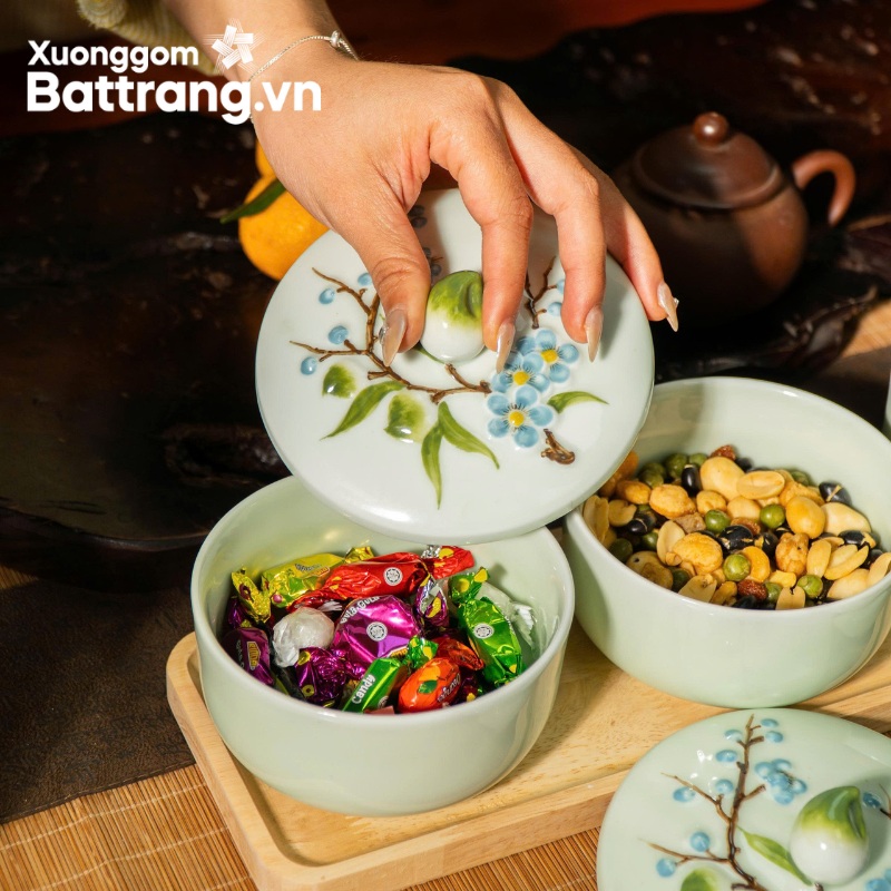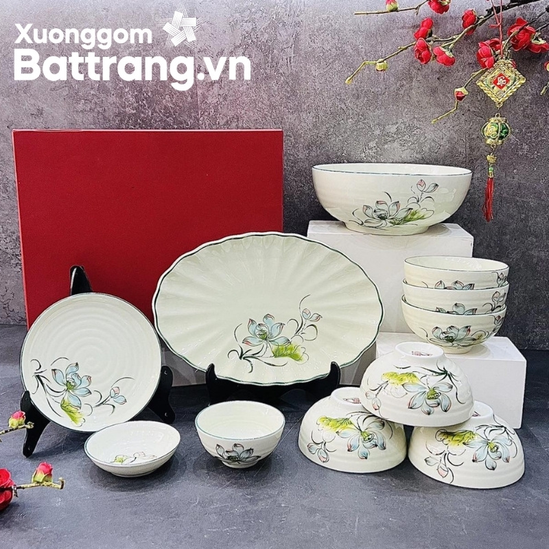 Các sản phẩm bình hoa, khay mứt tết, bộ bát đĩa, bình hút lộc họa tiết Liên Hoa