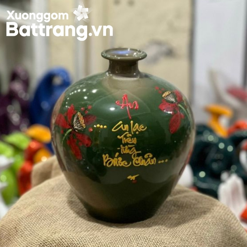 Phổ biến nhất là bộ ba chữ Phúc (hạnh phúc, viên mãn), Lộc (tài lộc, thịnh vượng) và Thọ (sức khỏe, trường thọ). Bên cạnh đó, những câu ca dao, tục ngữ như “Uống nước nhớ nguồn” hay “Công cha như núi Thái Sơn” cũng được trân trọng đưa vào gốm sứ như một lời nhắc nhở về đạo lý làm người.