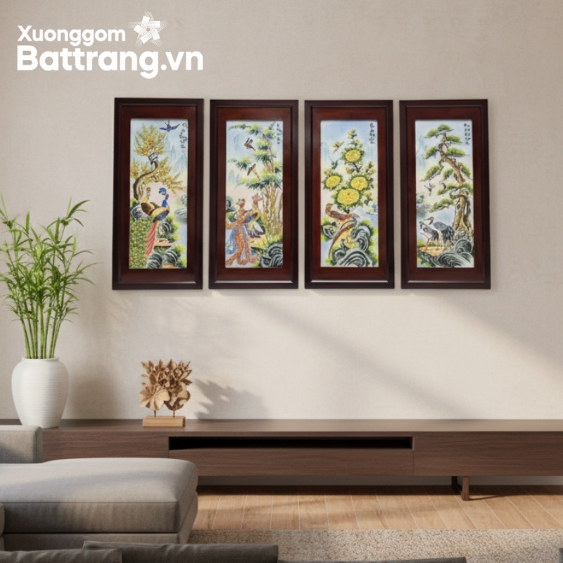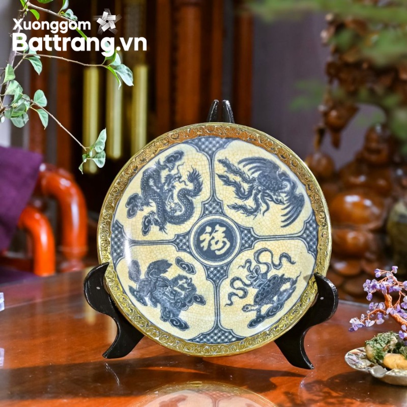 Đĩa cảnh tứ linh, lục bình tứ linh và tranh gốm tứ cảnh là những vật phẩm phong thủy đầy nghệ thuật bày trí không gian