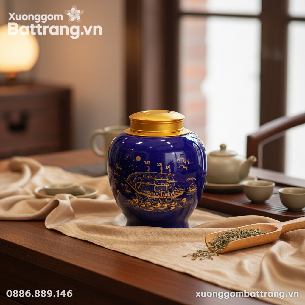Các món đồ hũ trà, đĩa cảnh, bình hút lộc hoa văn Thuận buồm xuôi gió làm quà tặng, trang trí, sử dụng