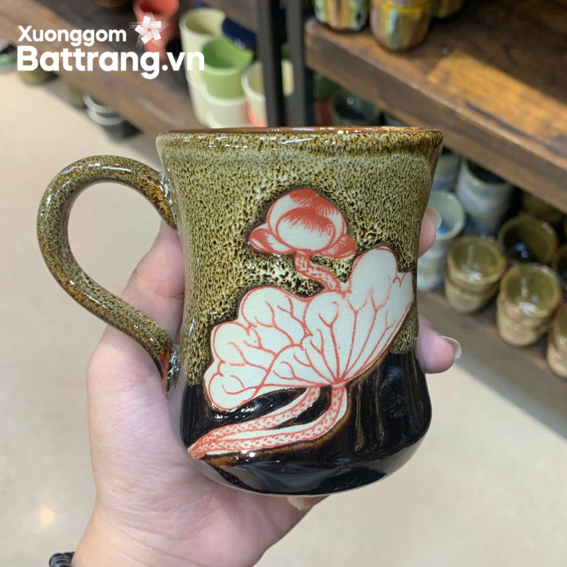 Họa tiết hoa sen được vẽ tay trên cốc sứ, hũ gạo, hũ trà tinh tế, trang nhã, góp phần mang năng lượng tích cực