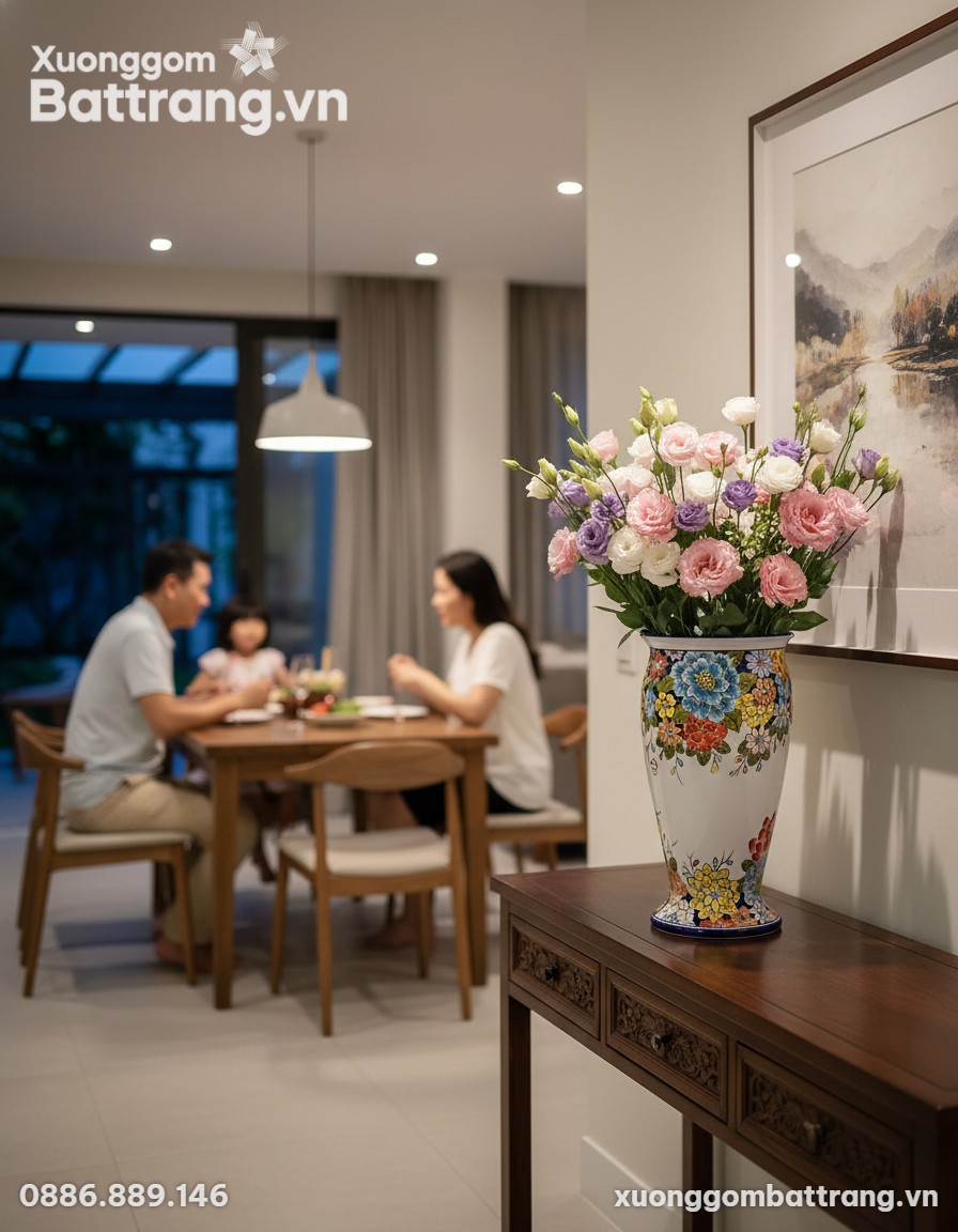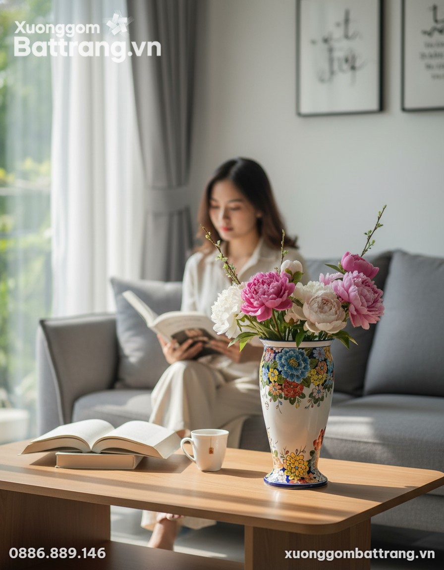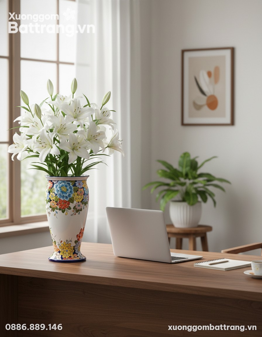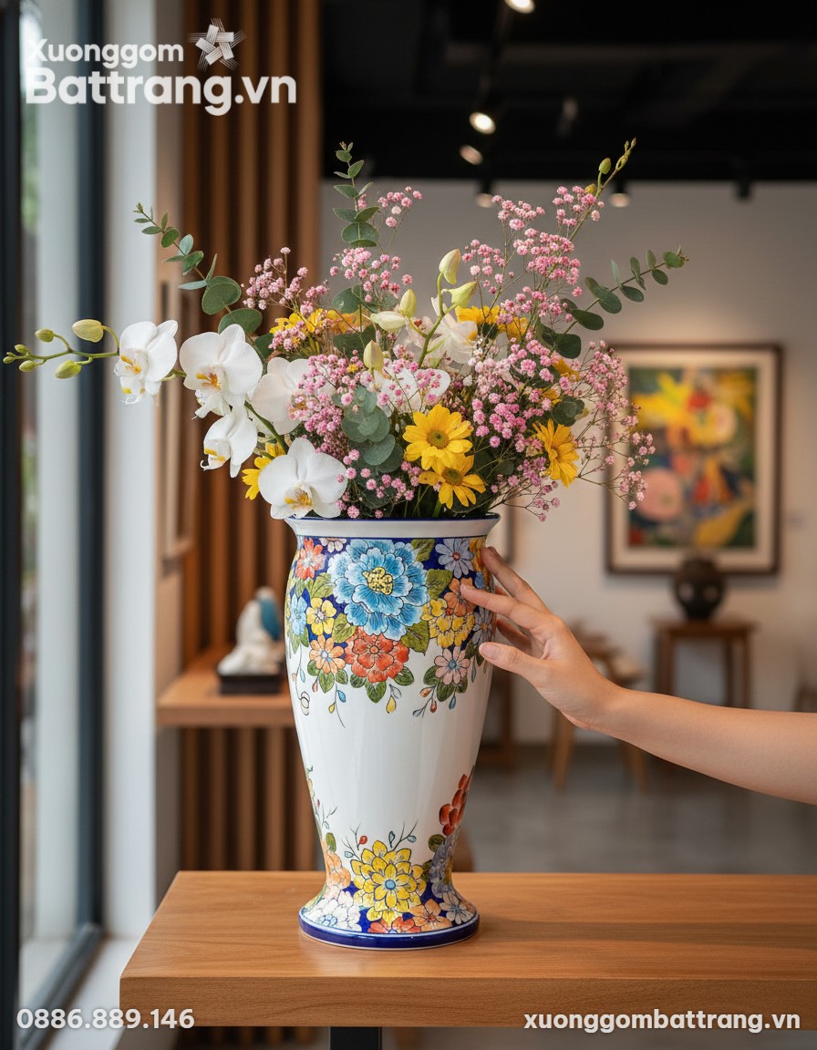 Đối với những người yêu decor và muốn thể hiện gu thẩm mỹ riêng, chiếc lọ hoa này là một lựa chọn không thể bỏ qua. Nó đại diện cho dòng sản phẩm lọ hoa Bát Tràng cao cấp, nơi mỗi tác phẩm đều kể một câu chuyện riêng, gửi gắm thông điệp về sự sống và vẻ đẹp vĩnh cửu.