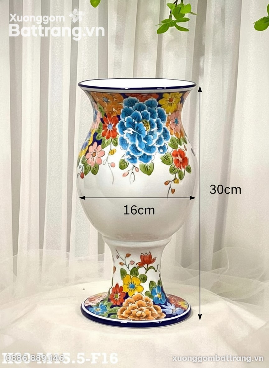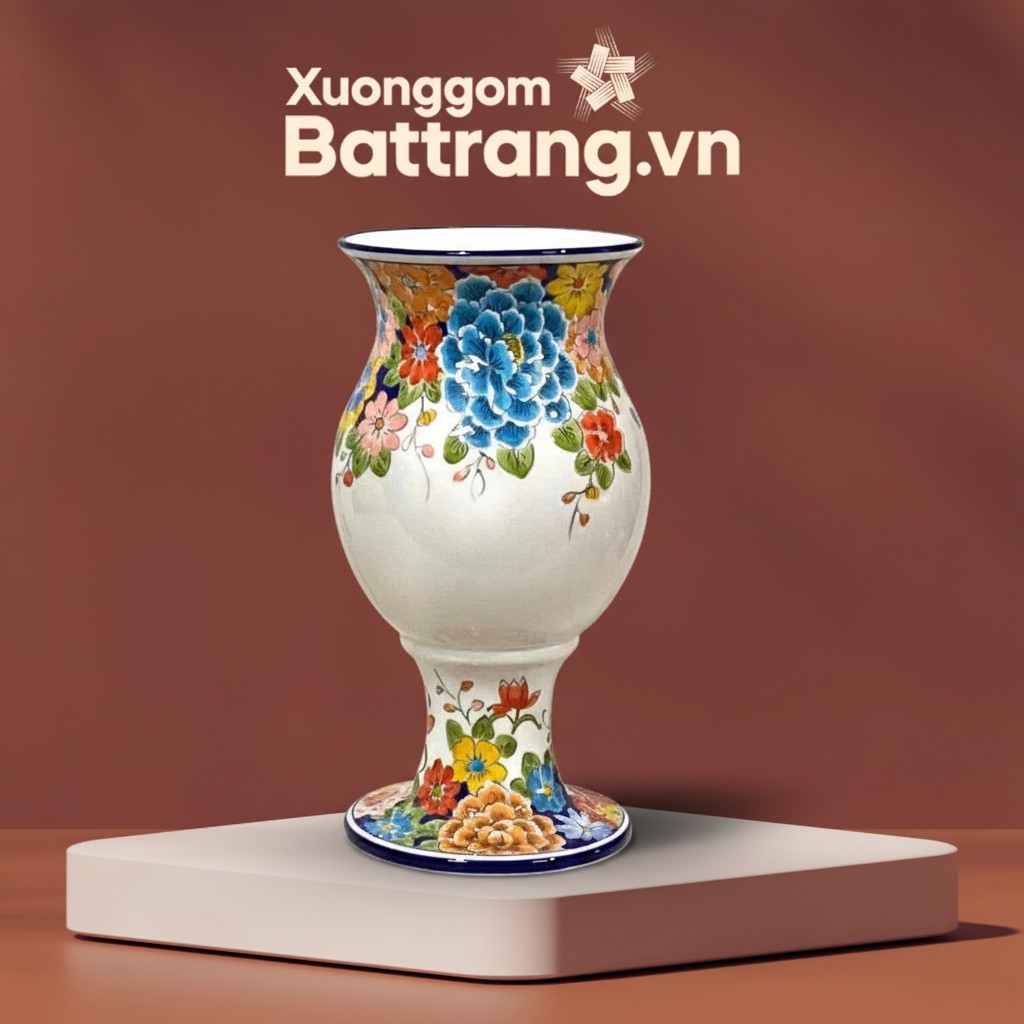 Lọ hoa dáng ly vẽ ngàn hoa đa sắc là một tuyệt tác nghệ thuật đến từ làng nghề Gốm Sứ Bát Tràng, nơi tinh hoa truyền thống được kết hợp hài hòa với hơi thở hiện đại. Sản phẩm này vừa là một vật dụng cắm hoa trang nhã, vừa là điểm nhấn rực rỡ, thổi bừng sức sống và nguồn năng lượng tích cực vào không gian sống của bạn.