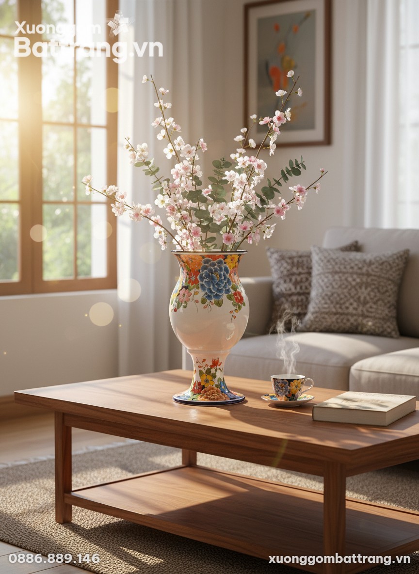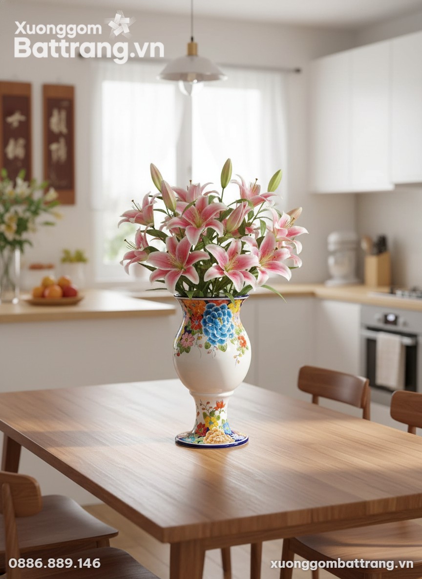 Trong dòng chảy bất tận của các sản phẩm lọ hoa gốm sứ, những tác phẩm đến từ Bát Tràng luôn nổi bật với sự tinh xảo và giá trị nghệ thuật vượt trội. Lọ hoa dáng ly vẽ ngàn hoa đa sắc là một minh chứng sống động, thể hiện trọn vẹn sự khéo léo của người nghệ nhân. Mỗi nét vẽ trên bình là sự hòa quyện tinh tế của sắc màu và câu chuyện về vẻ đẹp thiên nhiên, mang lại sự tươi mới cùng sinh khí cho tổ ấm.