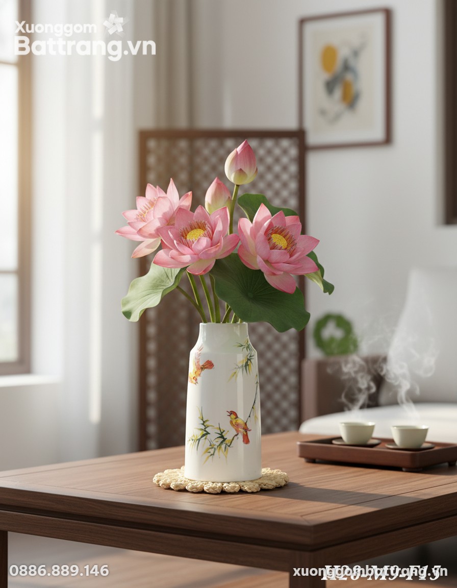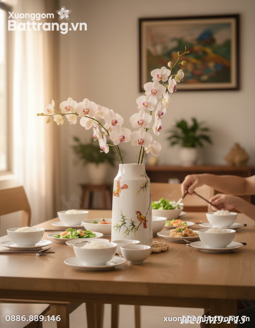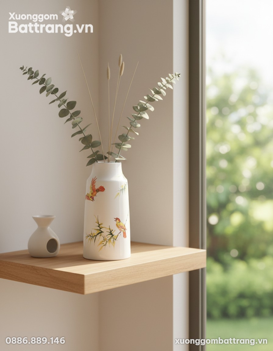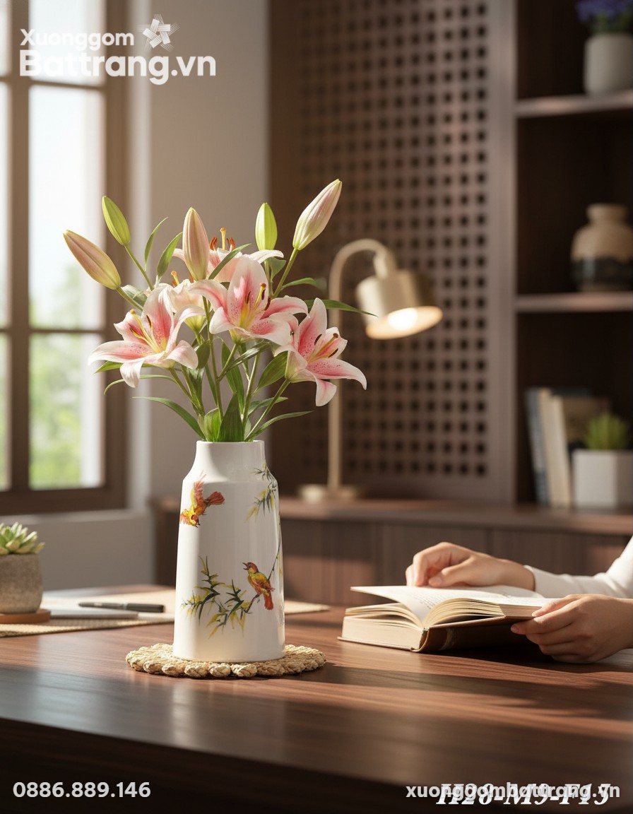 Lựa chọn lọ hoa từ Xưởng Gốm Bát Tràng là một quyết định thông thái cho những ai tìm kiếm sự kết hợp hoàn hảo giữa vẻ đẹp, chất lượng và giá trị bền vững. Mỗi sản phẩm đều được nung ở nhiệt độ rất cao (trên 1200°C), loại bỏ hoàn toàn tạp chất, đảm bảo an toàn tuyệt đối cho sức khỏe người sử dụng. Men trắng bóng mịn không chỉ dễ dàng vệ sinh mà còn giữ được vẻ đẹp nguyên bản qua thời gian, không bị phai màu hay ố vàng. Đây là lý do vì sao gốm sứ Bát Tràng luôn được đánh giá cao về độ bền và tính thẩm mỹ, mang lại giá trị sử dụng lâu dài cho gia đình bạn.