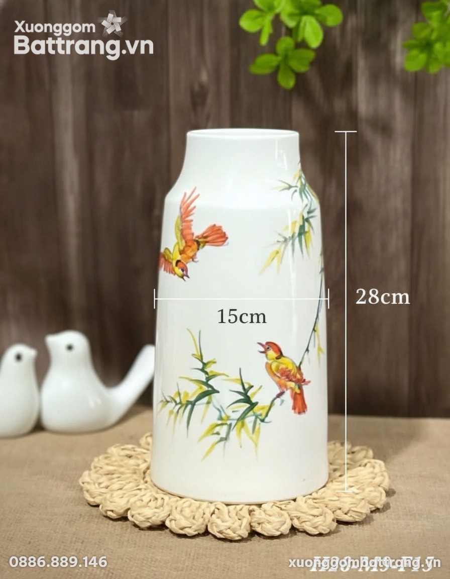 Lọ Hoa Dáng Ống Trúc Vẽ Tay Họa Tiết Chim Tre XG-LH26