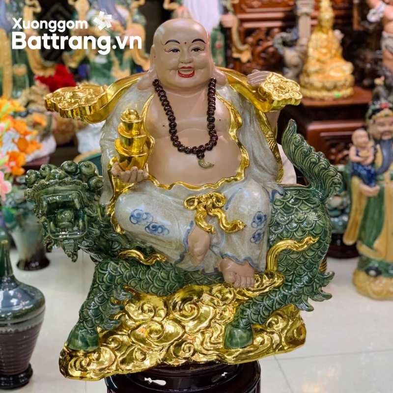 Tượng phật di lặc gốm sứ Bát Tràng chế tác tinh xảo, thể hiện thần thái đặc trưng