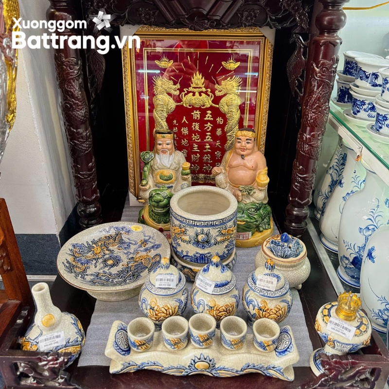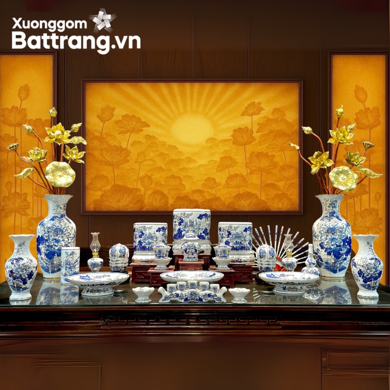 Đây là bộ vật phẩm phong thủy quan trọng và thiêng liêng nhất trong mỗi gia đình Việt. Một bộ đồ thờ Bát Tràng đầy đủ, trang nghiêm, thể hiện lòng thành kính của con cháu đối với tổ tiên. Đồ thờ gốm sứ còn là nền tảng cho sự bình an, ổn địnhphúc lộc của cả gia đình.