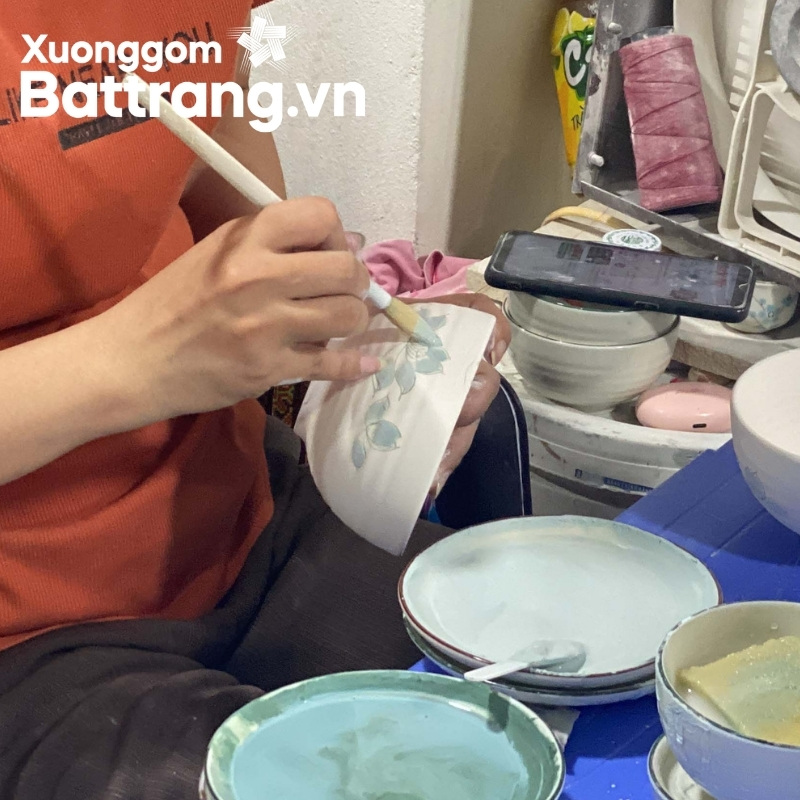 Bát đĩa được nhúng thủ công hoặc phun men để đảm bảo lớp men phủ đều cả mặt trong và mặt ngoài. Có đa dạng dòng men như men trắng, men màu, men kem, men hỏa biến,…