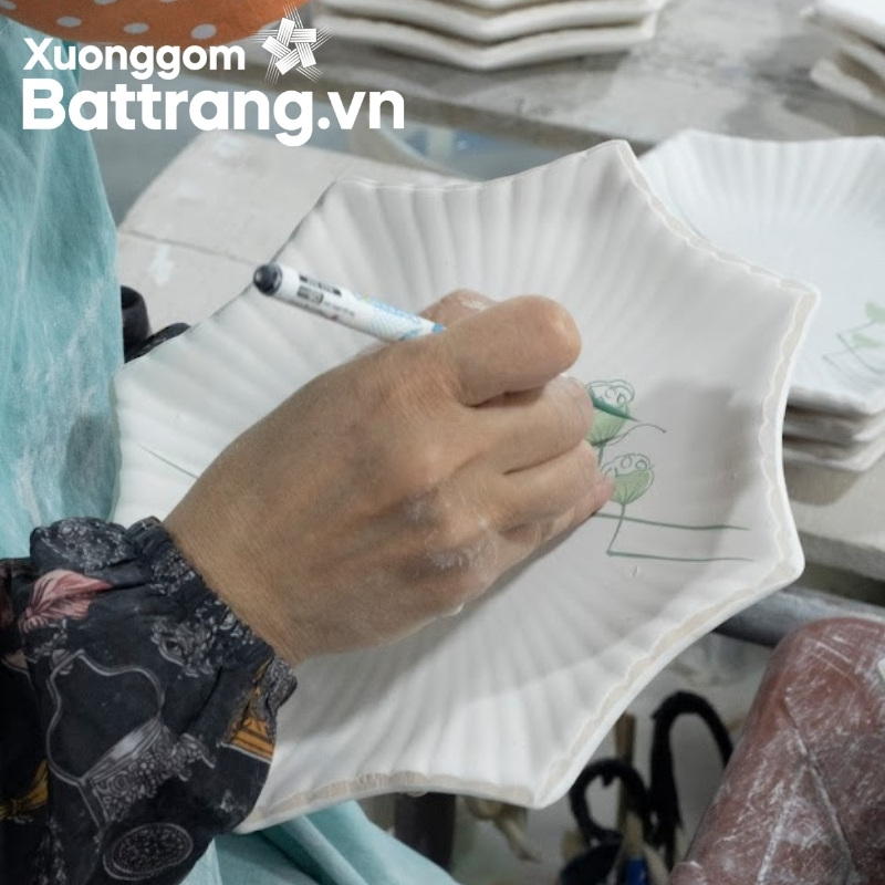 Nghệ nhân Bát Tràng vẽ tay thủ công họa tiết tinh xảo trên bề mặt