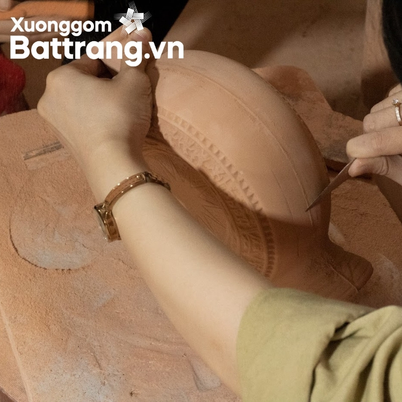 - Vẽ tay: Các họa tiết truyền thống như Tứ Quý, làng quê Việt Nam… được vẽ thủ công.