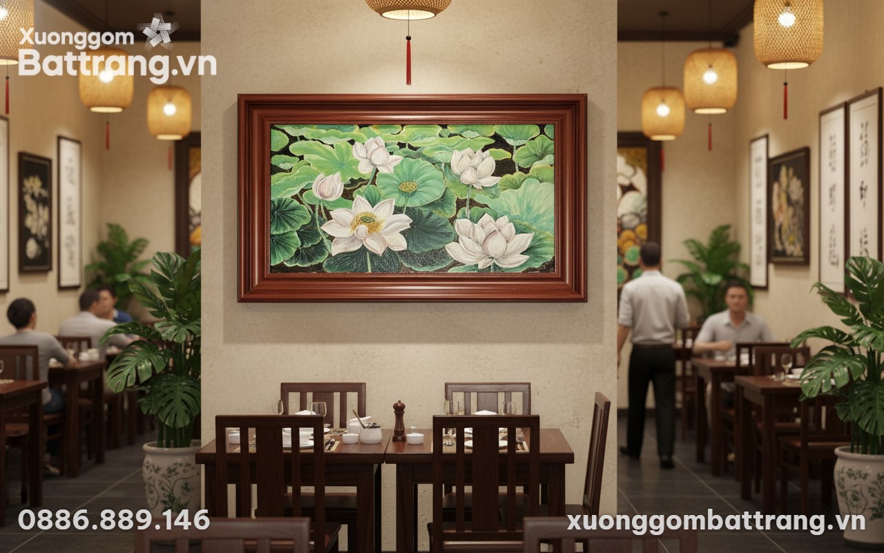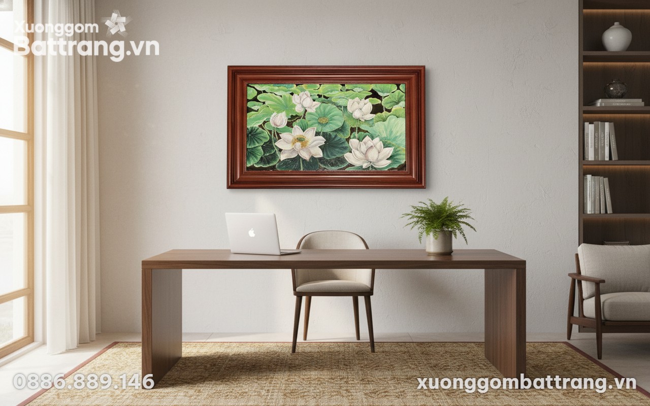 - Phòng thờ: Với biểu tượng thanh khiết của sen, bức tranh rất phù hợp để tạo không khí trang nghiêm, thanh tịnh cho không gian thờ cúng.