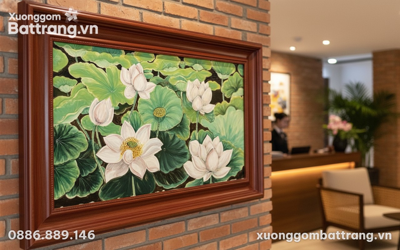 Tranh Bách Liên Hoa Gốm Sứ Bát Tràng XG-TR05 là lựa chọn lý tưởng để tôn vinh vẻ đẹp cho nhiều không gian khác nhau, đồng thời mang ý nghĩa phong thủy tốt lành: