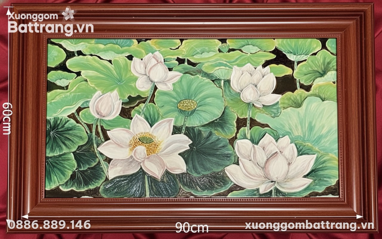 Tranh Bách Liên Hoa Gốm Sứ Bát Tràng XG-TR05 là một kiệt tác nghệ thuật thủ công, nơi vẻ đẹp thanh khiết của hoa sen được tái hiện sống động trên chất liệu gốm sứ cao cấp.