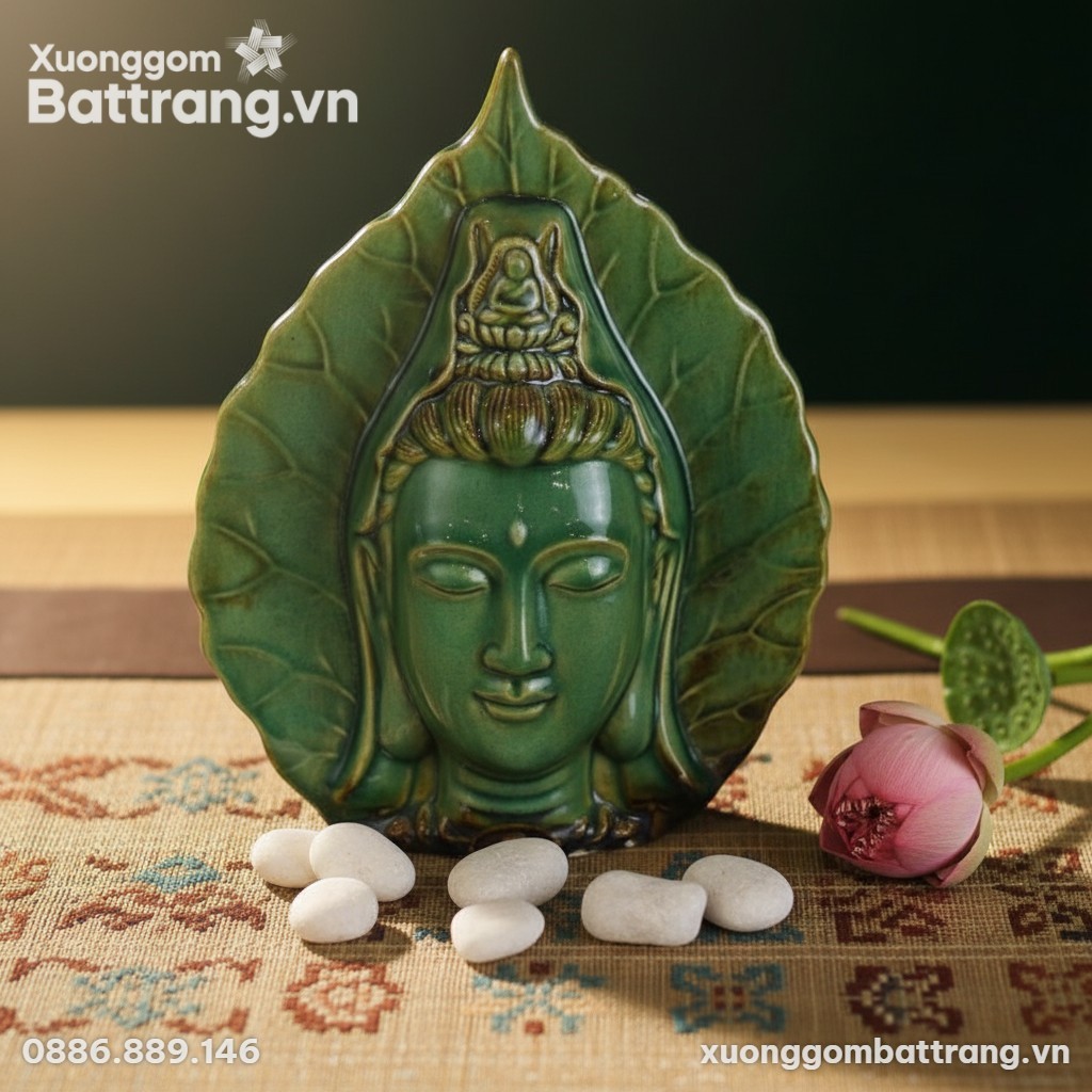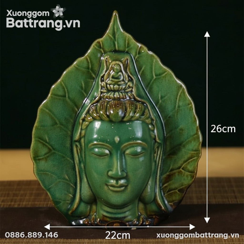Tượng Lá Bồ Đề Mặt Quan Âm Men Ngọc Lục XG-TG18 là một tuyệt tác gốm sứ, mang trong mình vẻ đẹp an nhiên và ý nghĩa tâm linh sâu sắc. Được chế tác tỉ mỉ bởi những nghệ nhân tài hoa của làng nghề Bát Tràng, bức tượng không chỉ là vật phẩm trang trí mà còn là biểu tượng của sự bình an, lòng từ bi và trí tuệ vô biên của Đức Quan Thế Âm Bồ Tát.